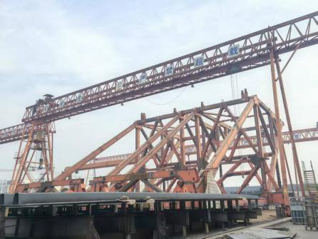 近日,由我公司參與組拼及改制的1800噸架梁起重機在池州長江大橋南岸成功吊裝首片鋼桁梁,標志著該設備正式交付并投入運行。圖(...